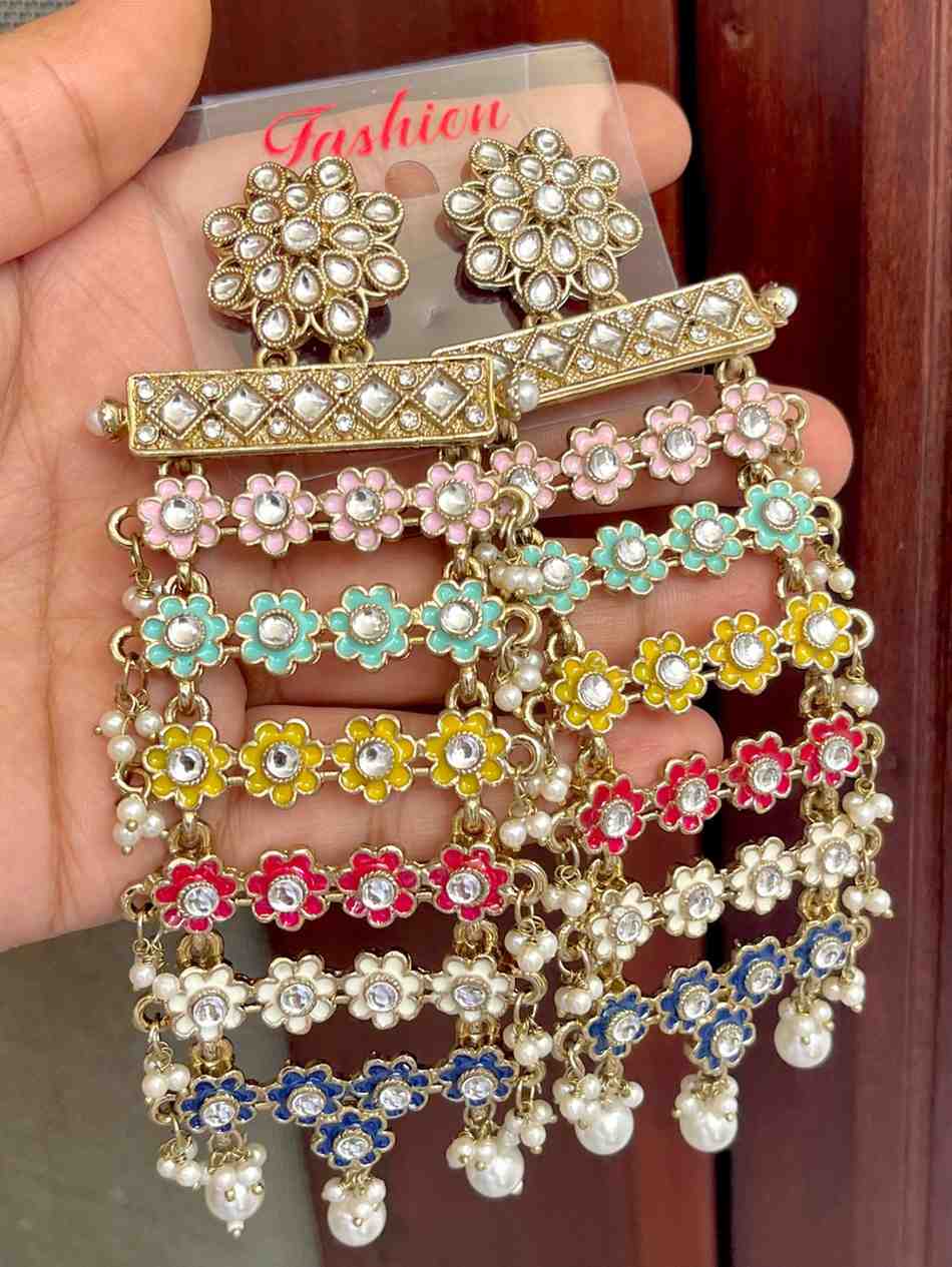 Beautiful Premium Quality Reverse Ad Stone Work Pakistani Shara Earrings....