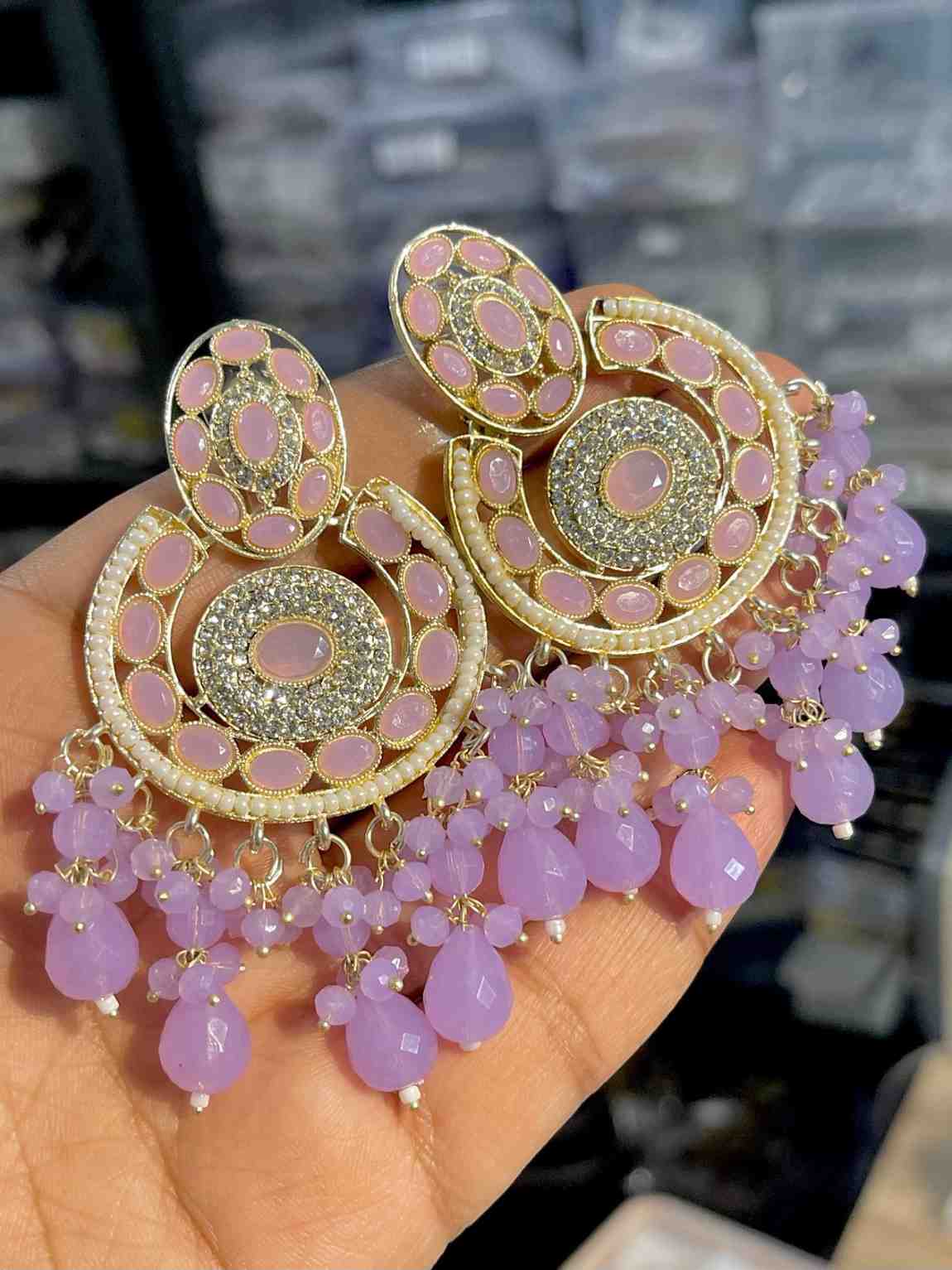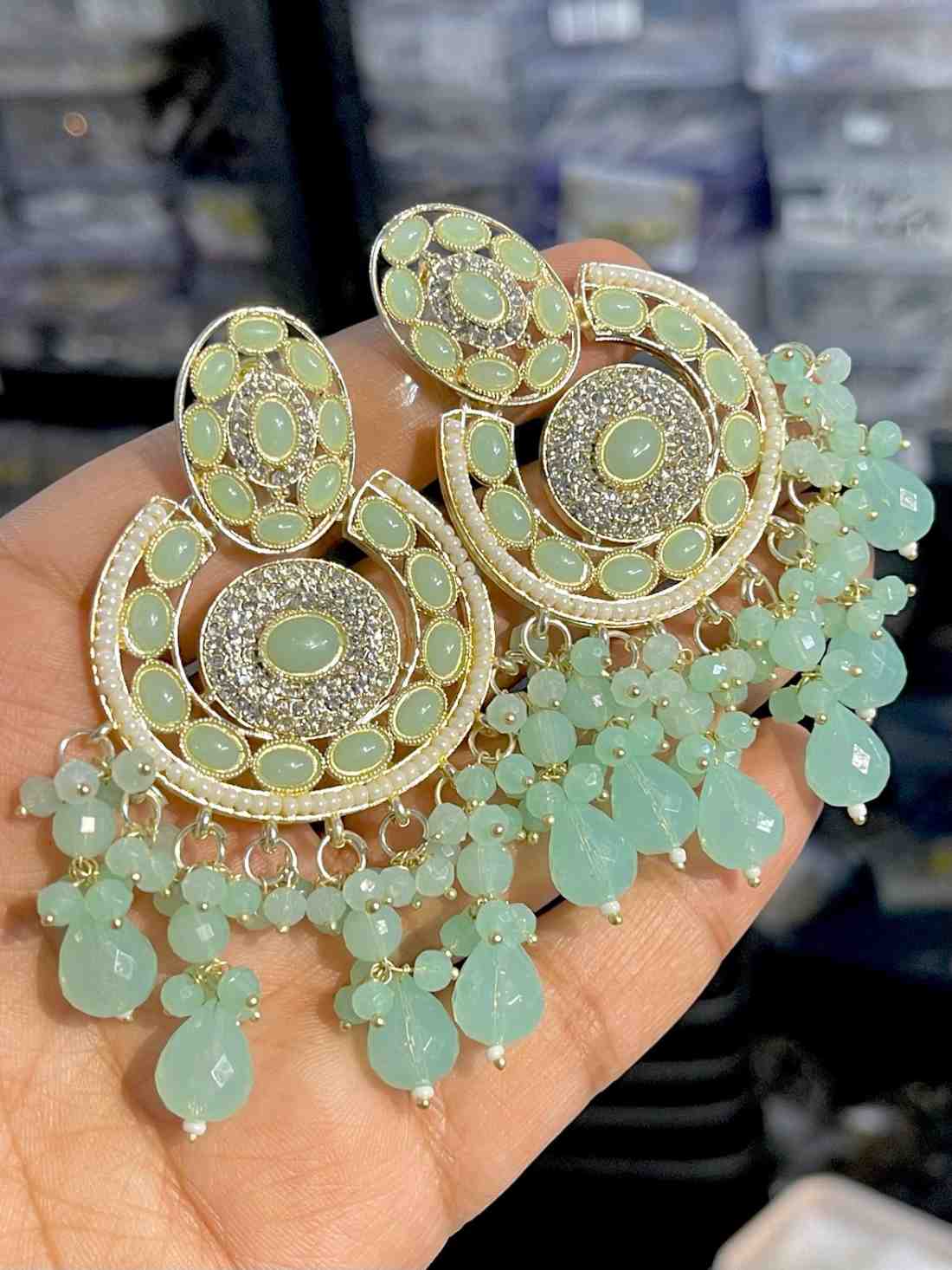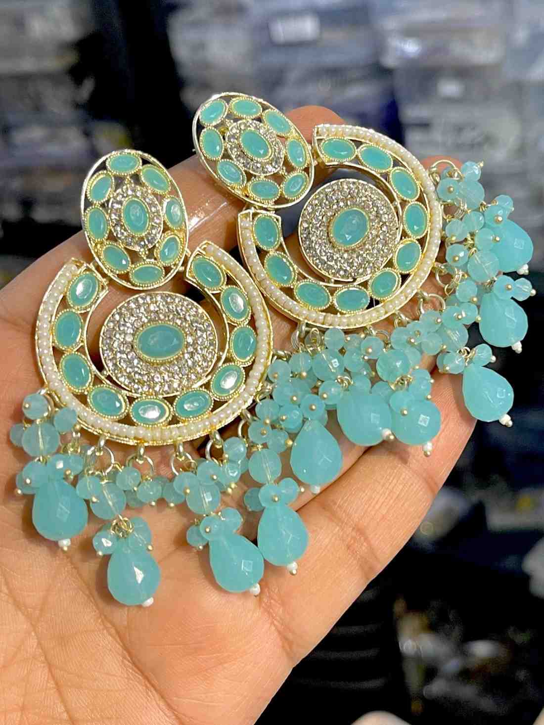 Beautiful Premium Quality Reverse Ad Stone Work Pakistani Shara Earrings....