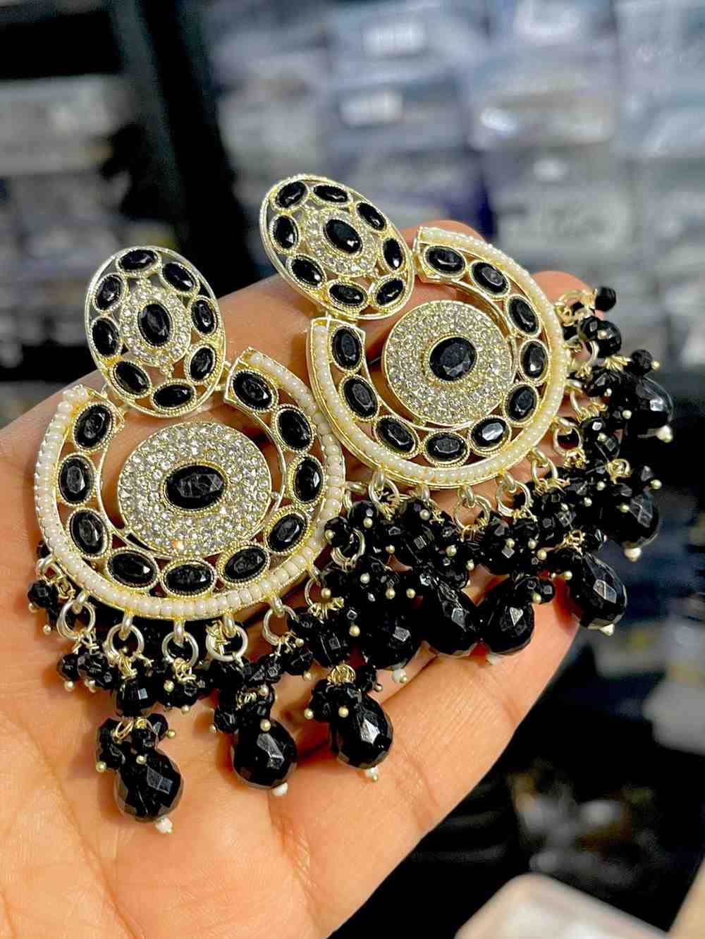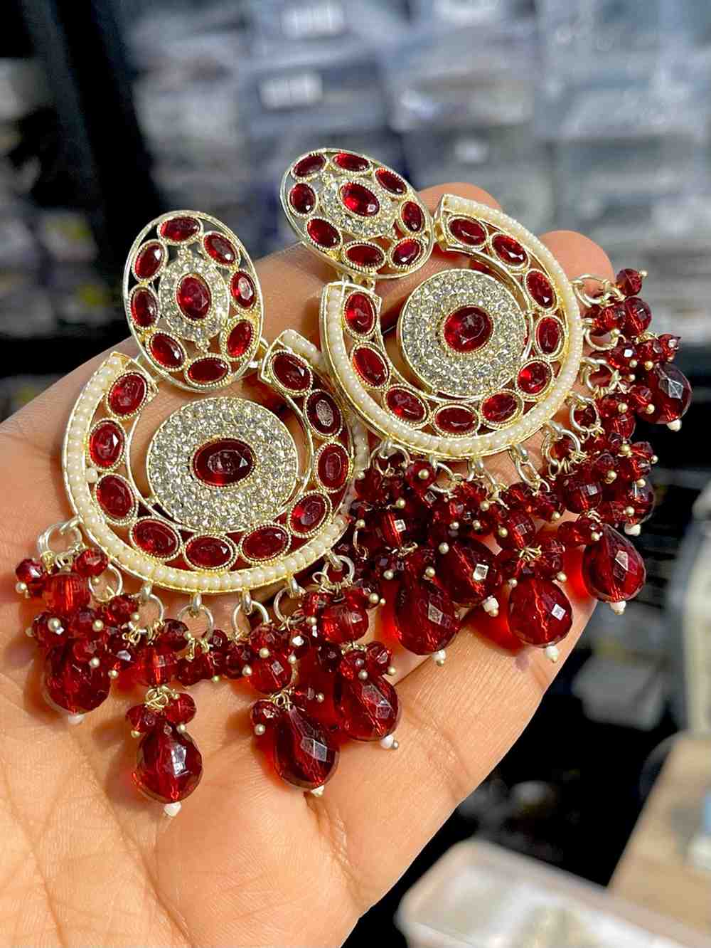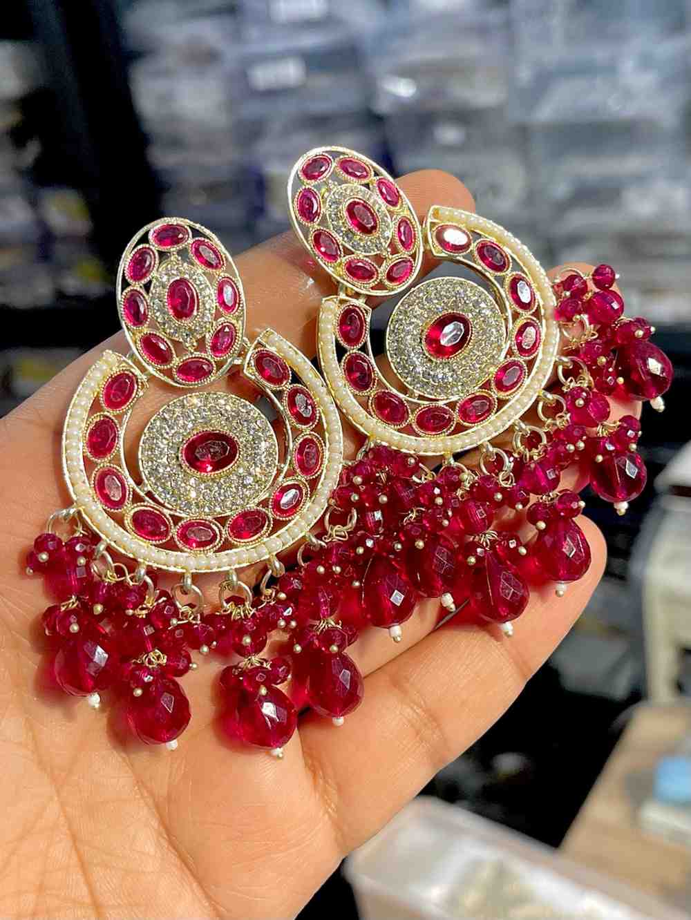 Beautiful Premium Quality Reverse Ad Stone Work Pakistani Shara Earrings....