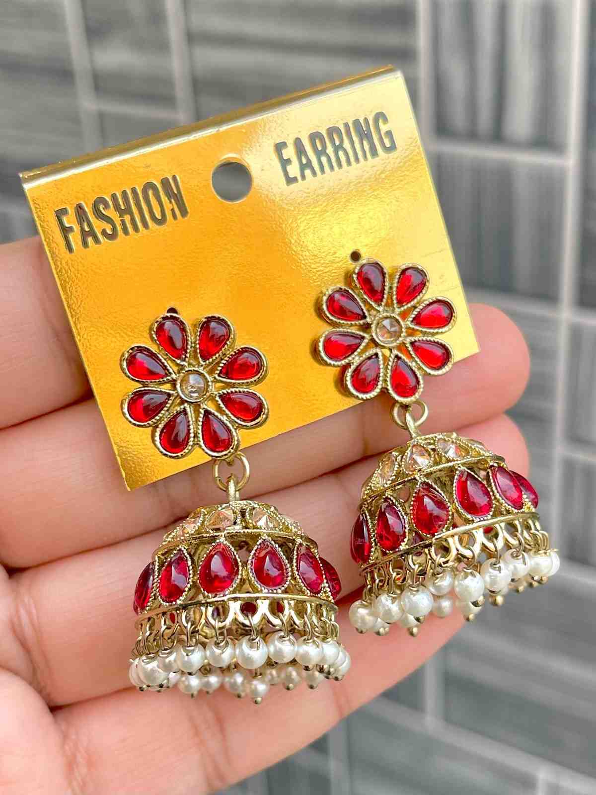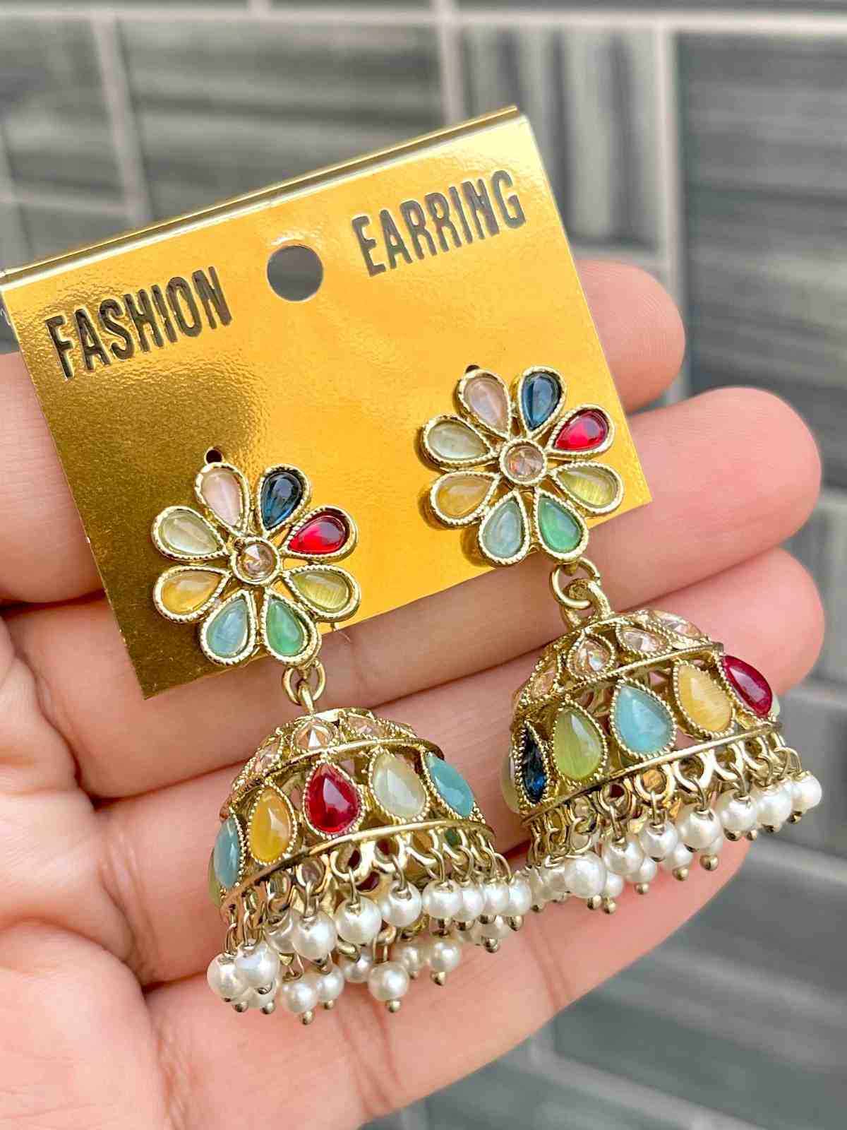 Beautiful Premium Quality Reverse Ad Stone Work Pakistani Shara Earrings....