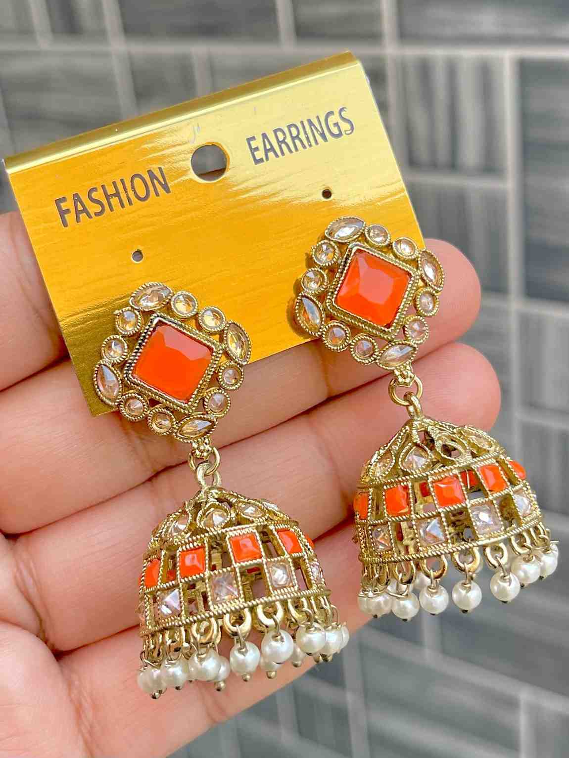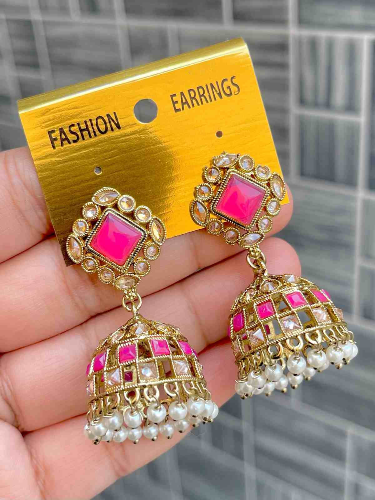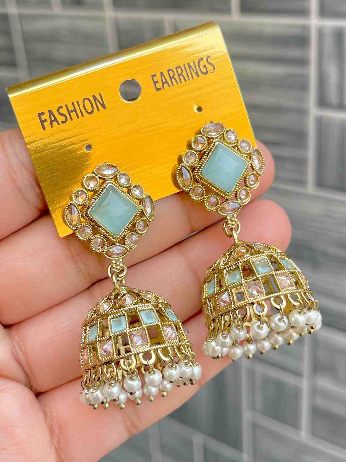 Beautiful Premium Quality Reverse Ad Stone Work Pakistani Shara Earrings....