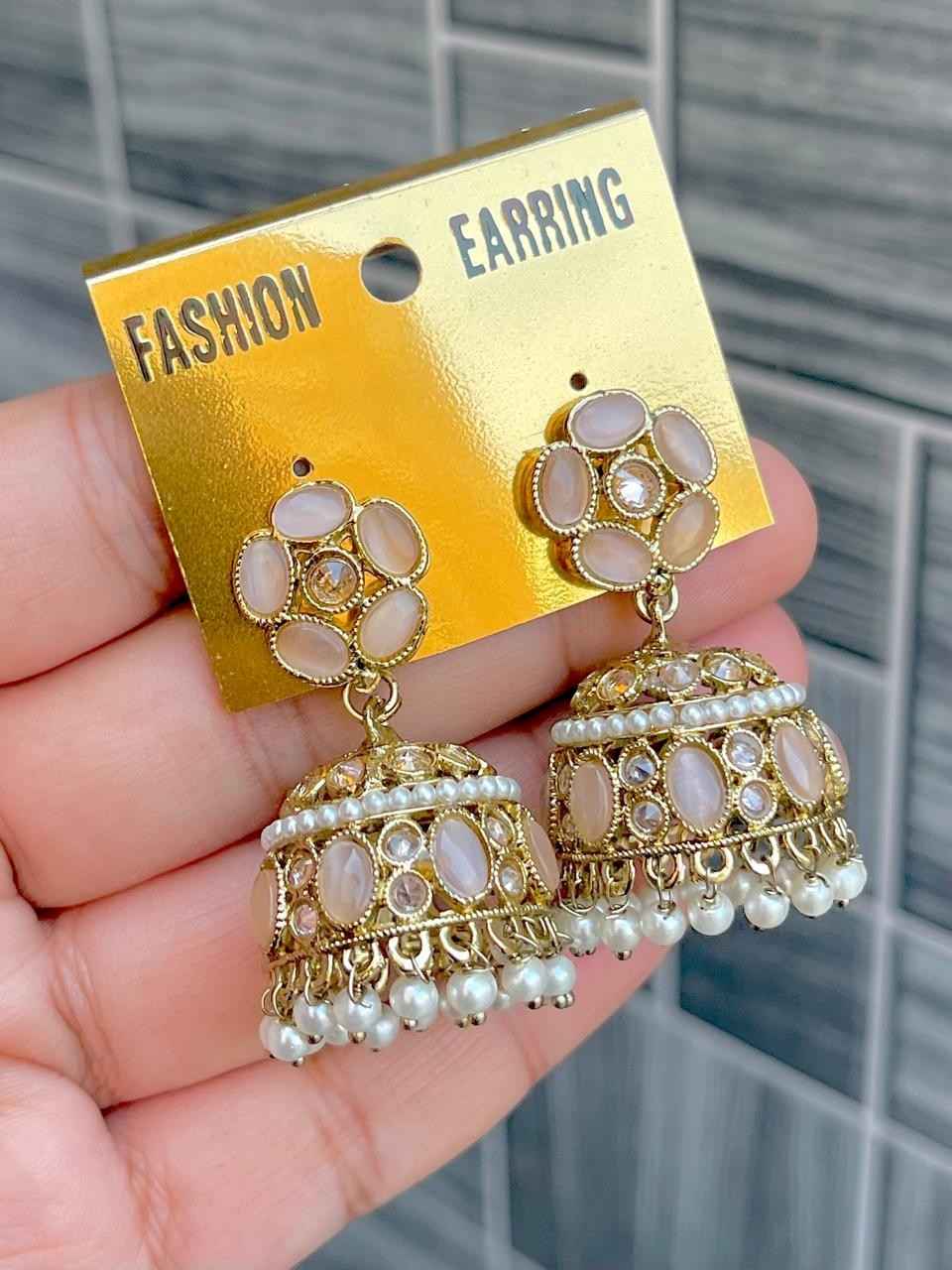 Beautiful Premium Quality Reverse Ad Stone Work Pakistani Shara Earrings....