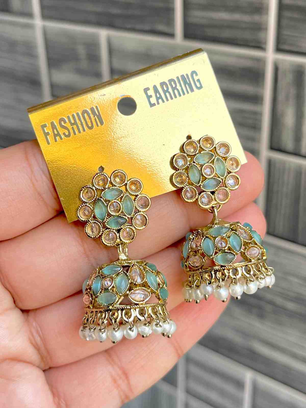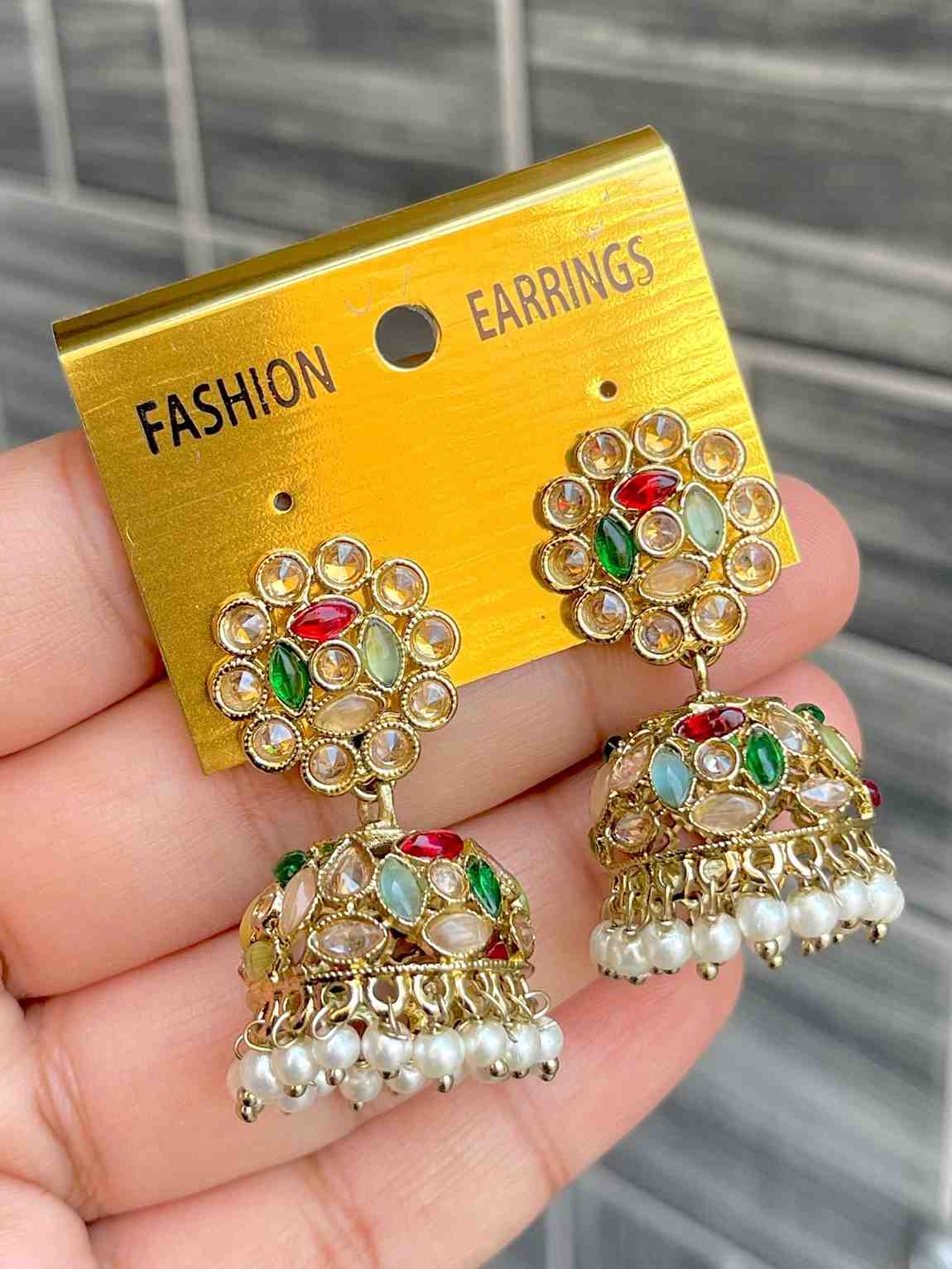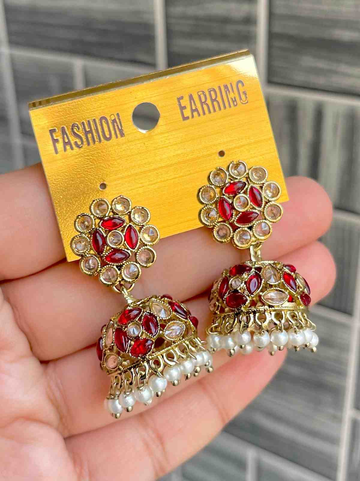 Beautiful Premium Quality Reverse Ad Stone Work Pakistani Shara Earrings....