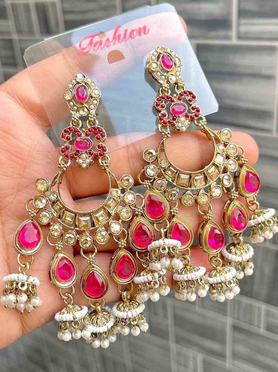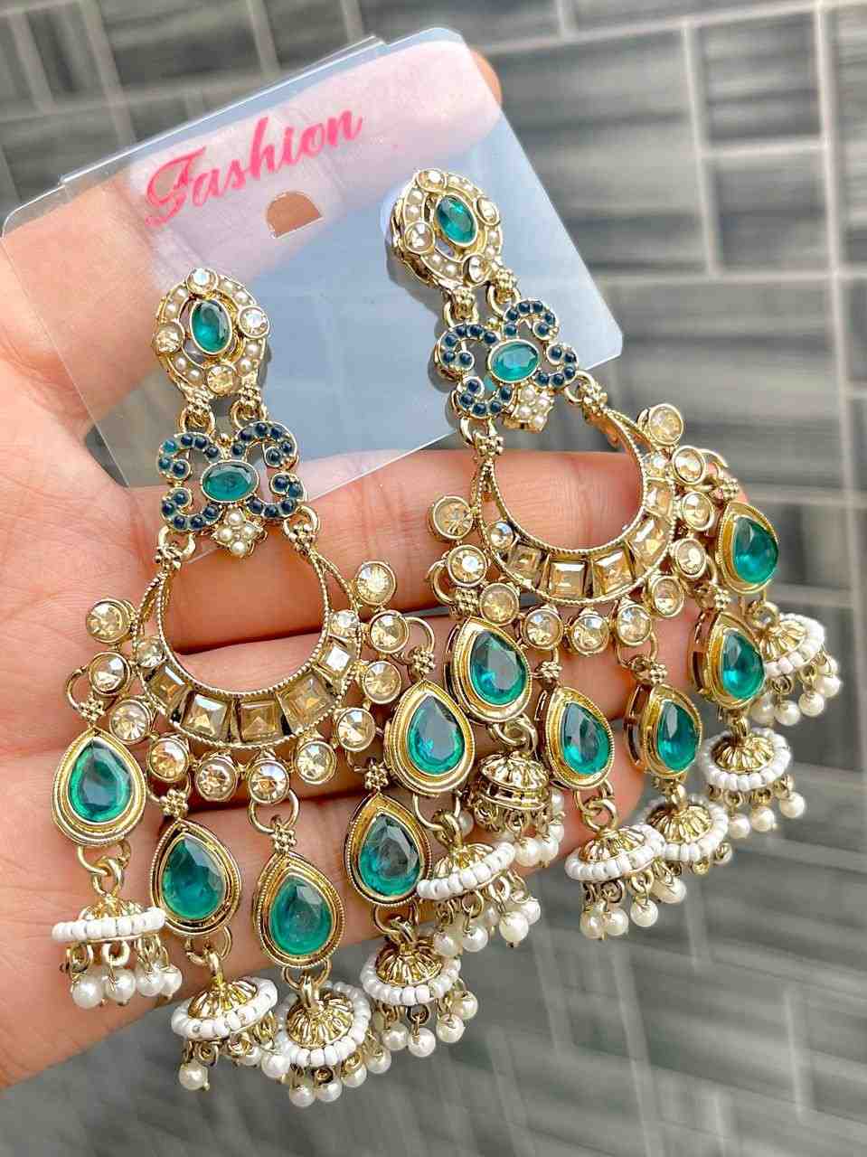 Beautiful Premium Quality Reverse Ad Stone Work Pakistani Shara Earrings....