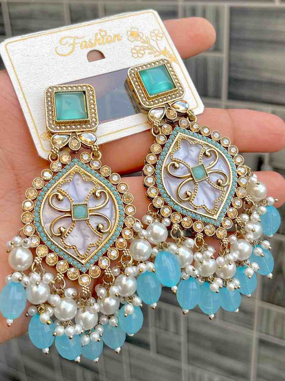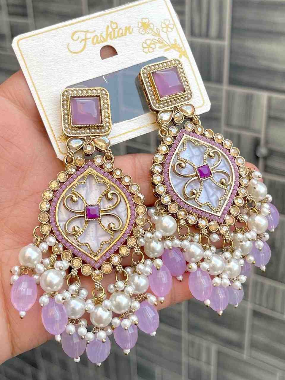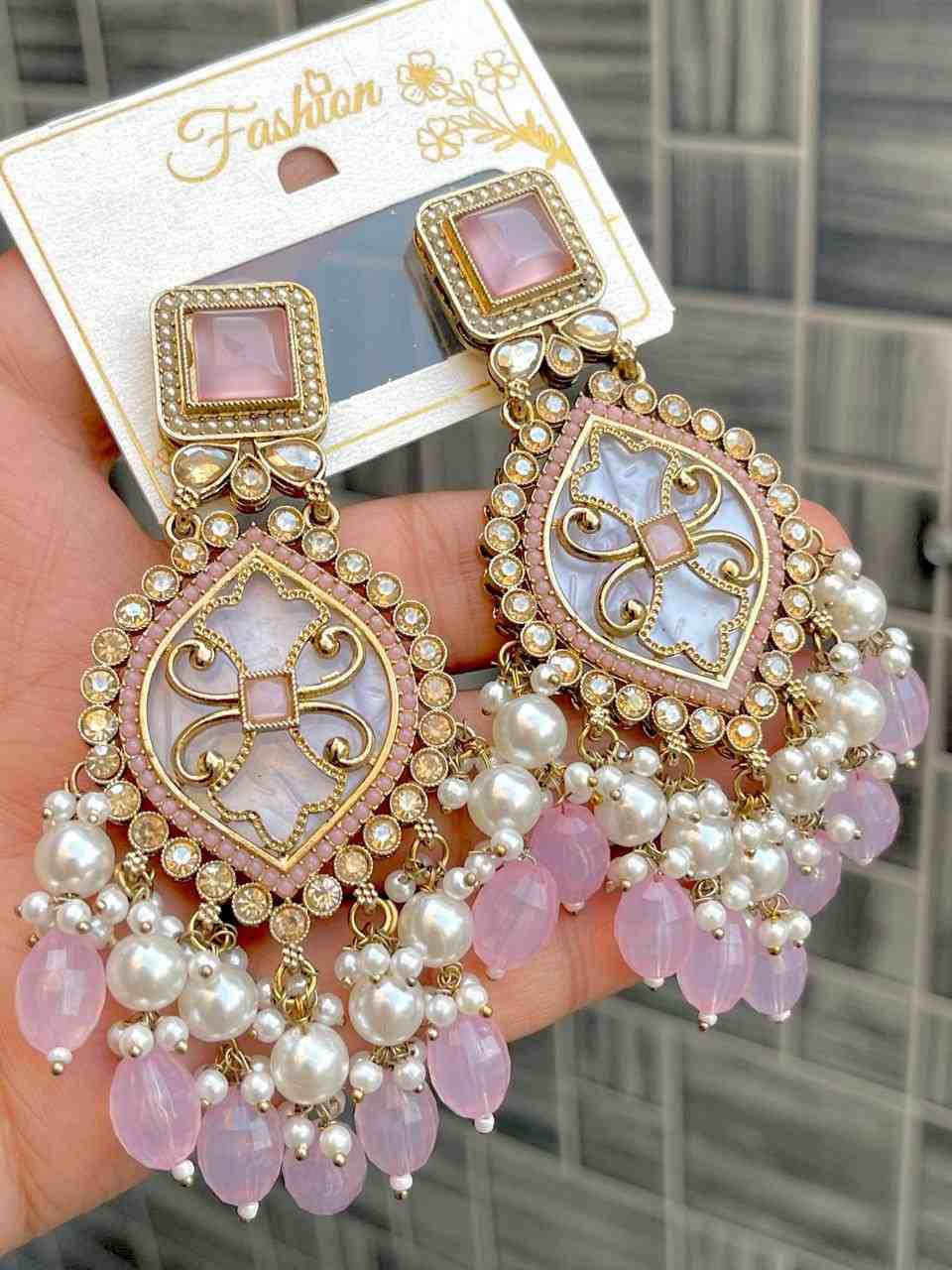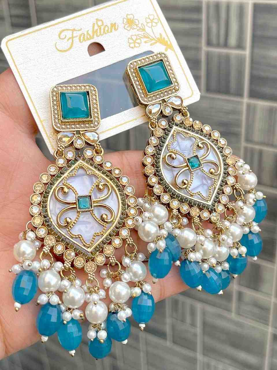 Beautiful Premium Quality Reverse Ad Stone Work Pakistani Shara Earrings....