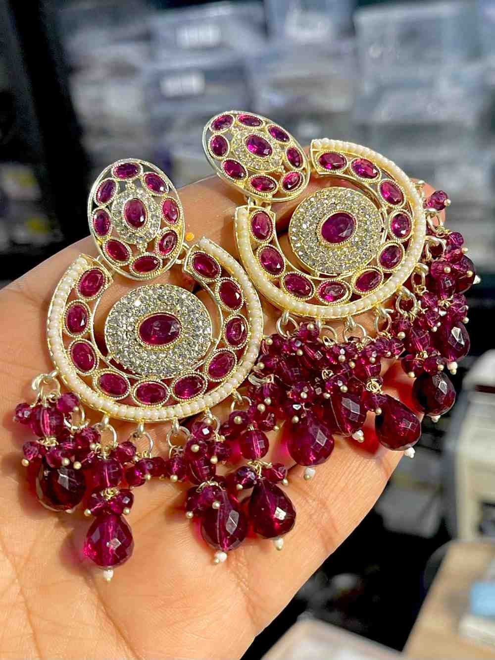 Beautiful Premium Quality Reverse Ad Stone Work Pakistani Shara Earrings....