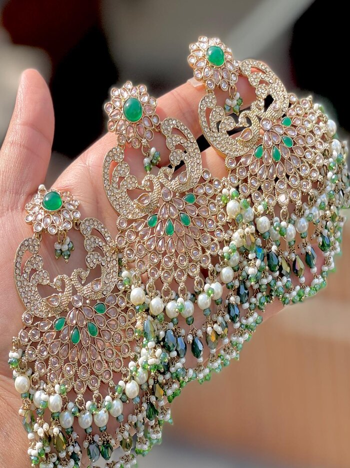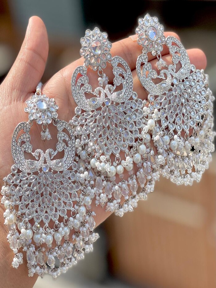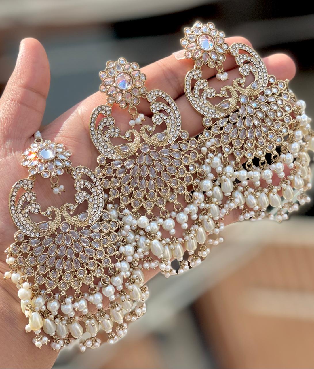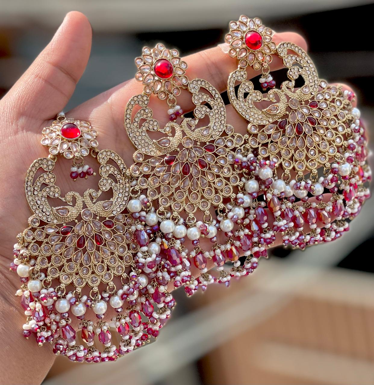 Elevate your bridal or festive look with this exquisite Kundan Tikka and Chandbali Earrings Set. Designed with shimmering stones, rich ruby-pink accents, and elegant pearls, this piece adds timeless royal charm to any traditional outfit.