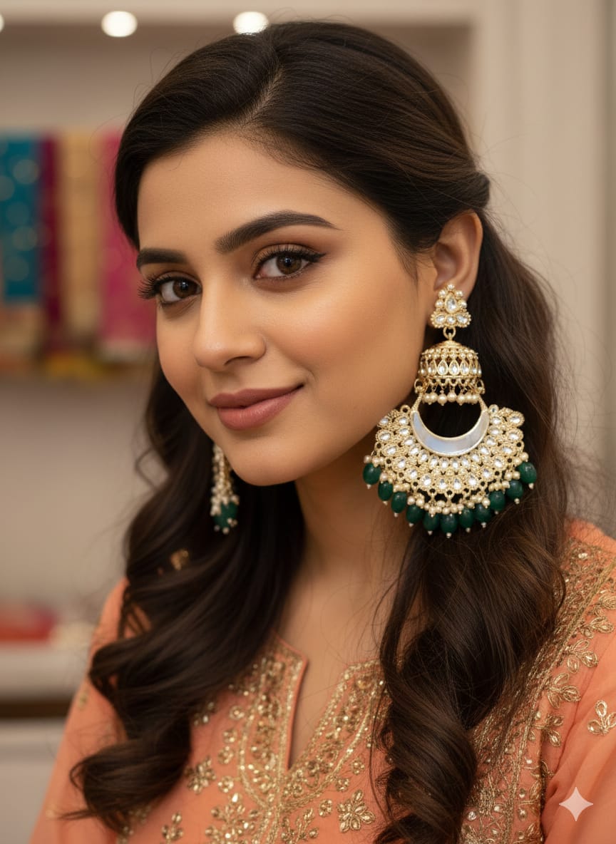 Beautiful Premium Quality Reverse Ad Stone Work Pakistani Shara Earrings....