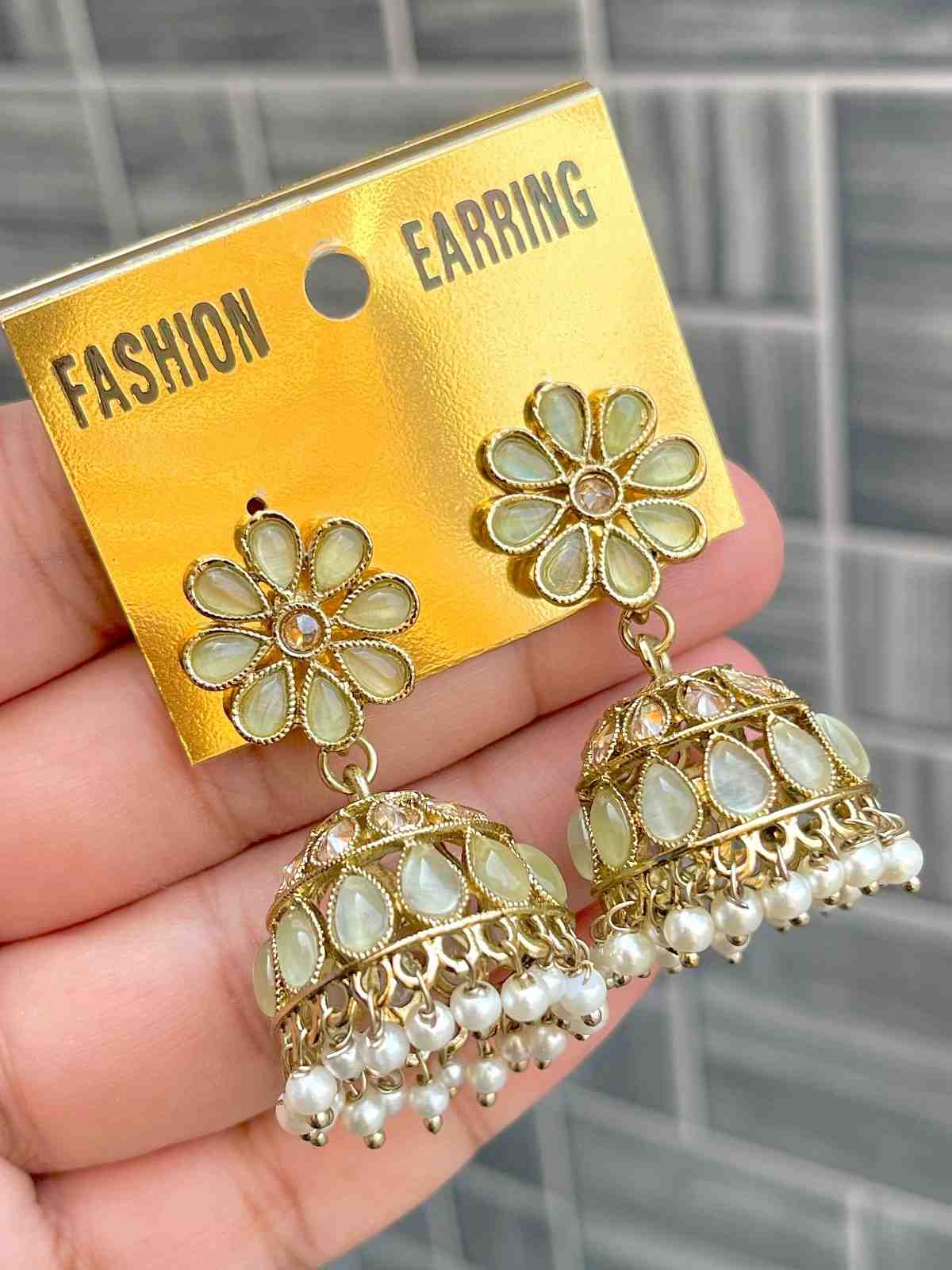Beautiful Premium Quality Reverse Ad Stone Work Pakistani Shara Earrings....