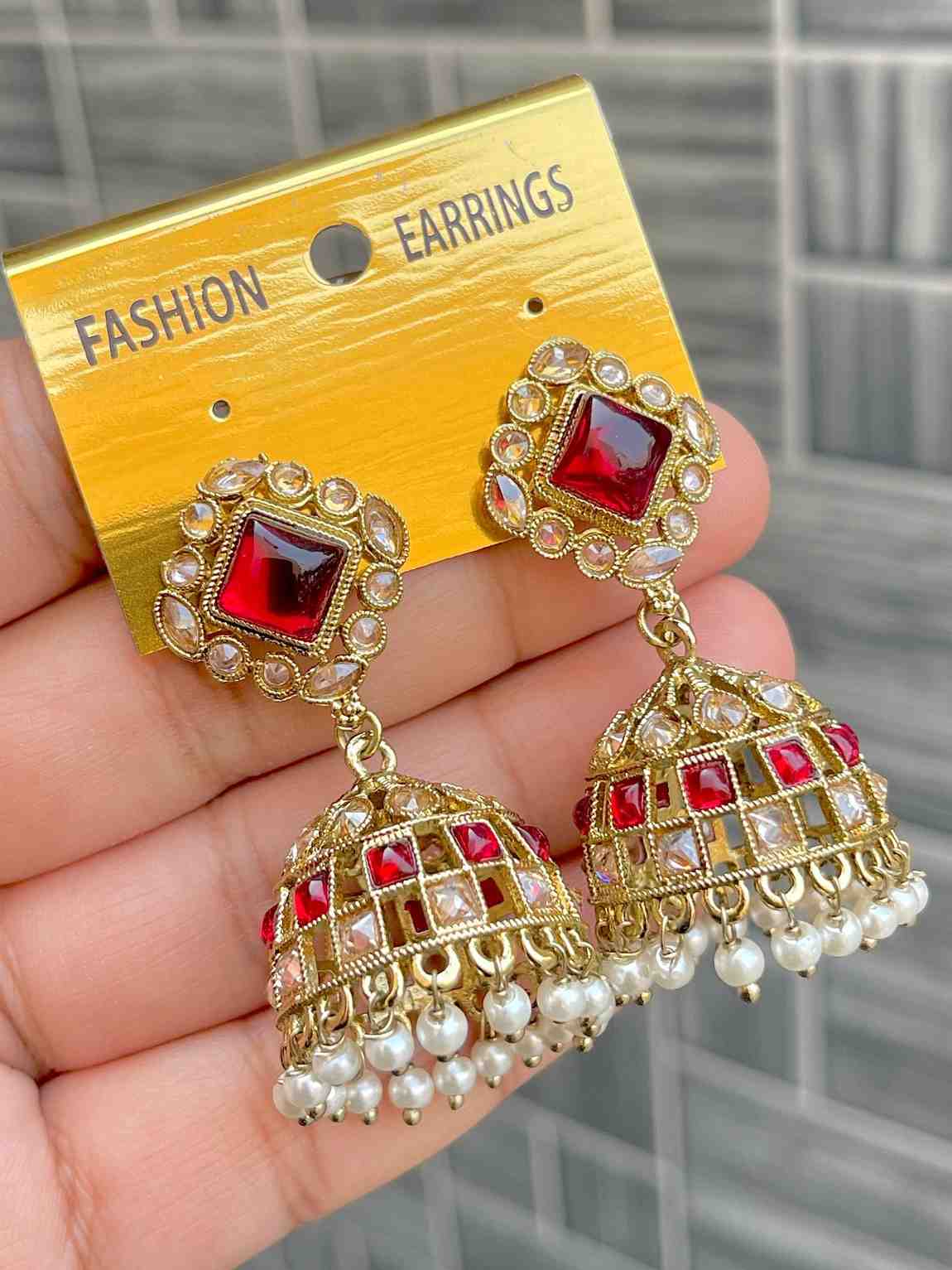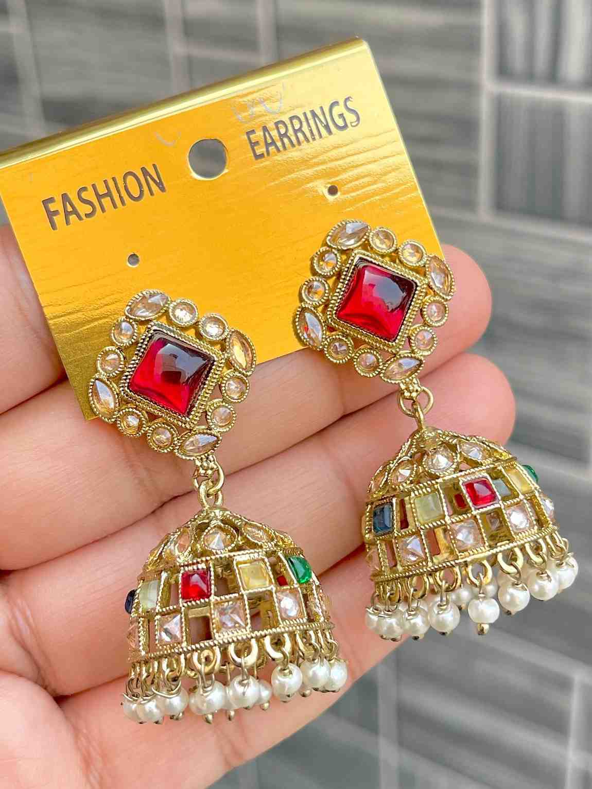 Beautiful Premium Quality Reverse Ad Stone Work Pakistani Shara Earrings....