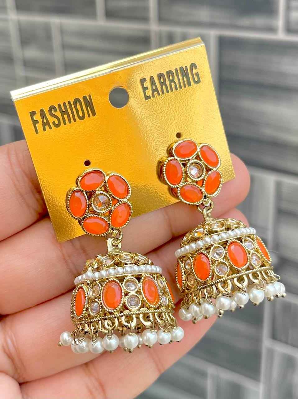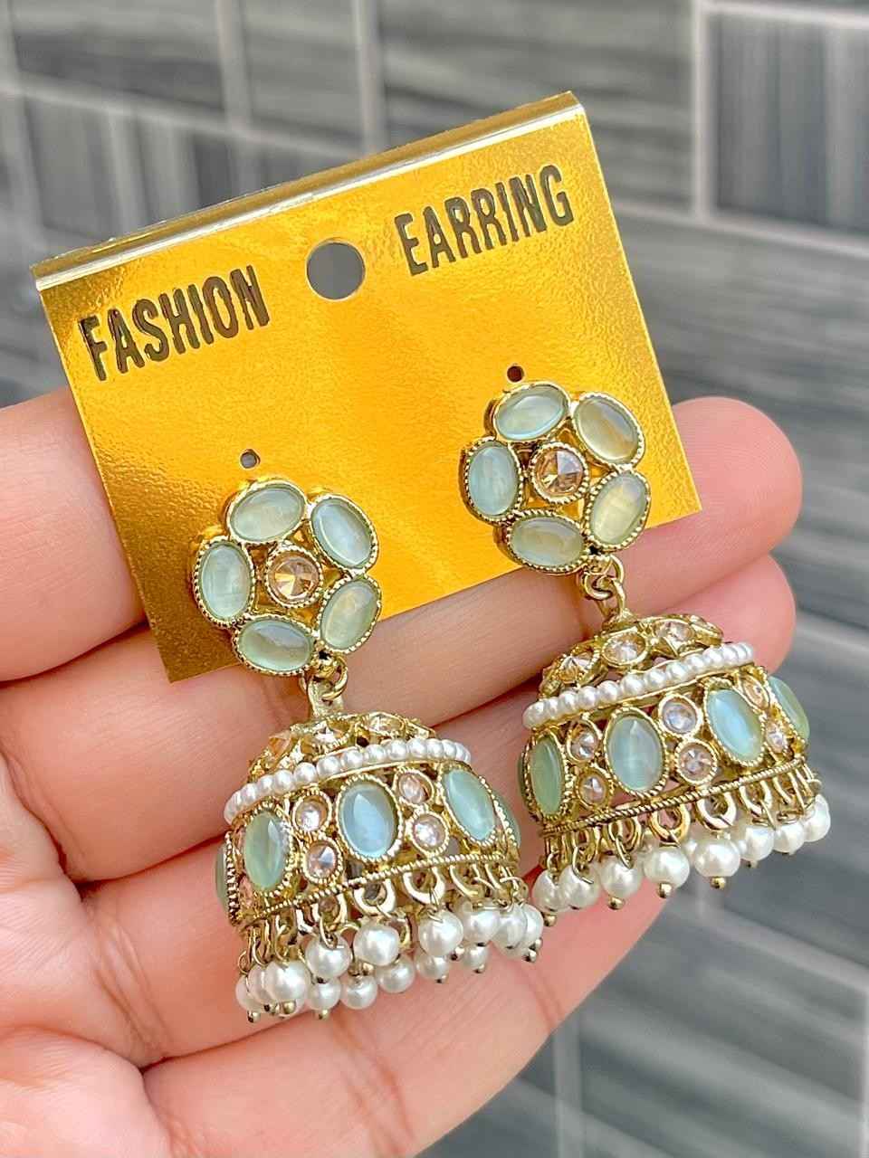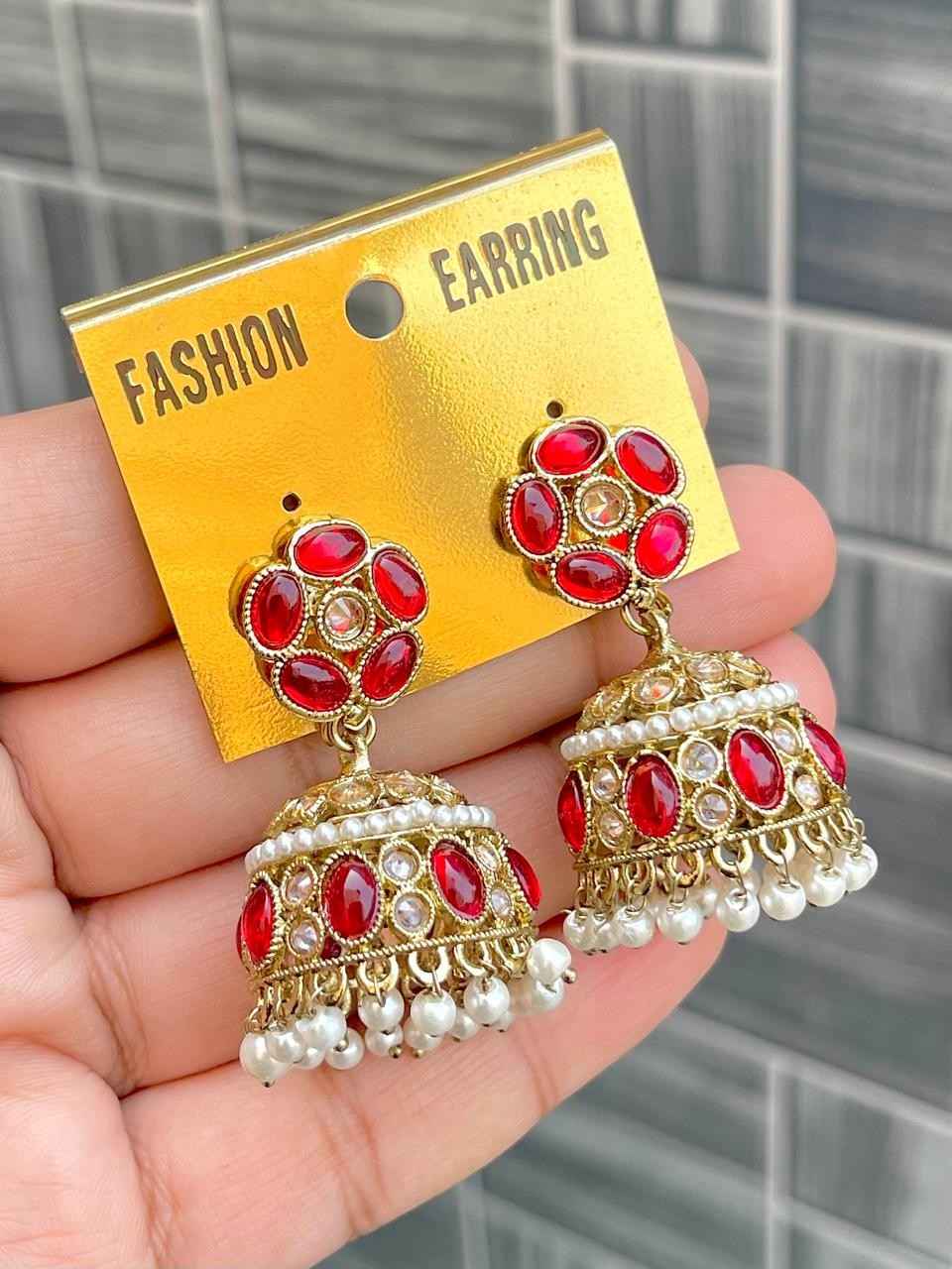 Beautiful Premium Quality Reverse Ad Stone Work Pakistani Shara Earrings....